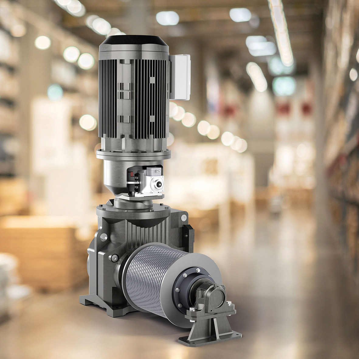 Compact fit between motor and transmission: the new MV brake from RINGSPANN here in a rope drum drive. (Bild: RINGSPANN)